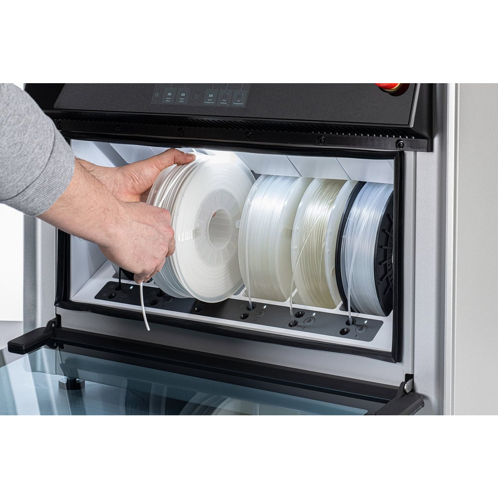 - Автоматизированная система подачи материала с поддержкой низкой относительной влажности.