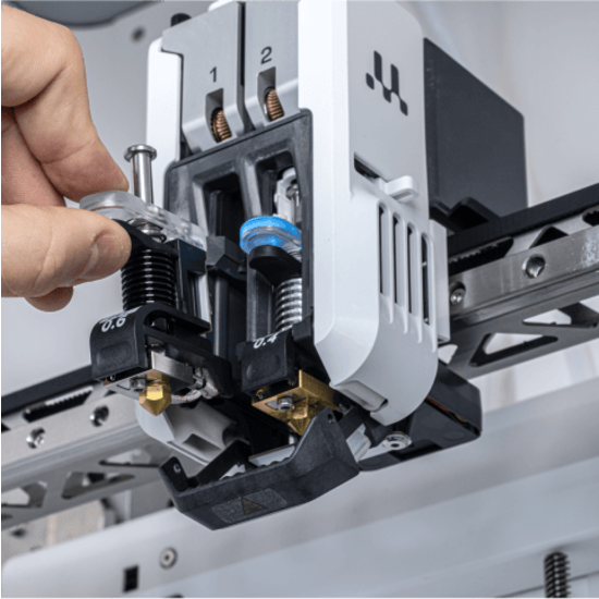 Печатающие головки UltiMaker имеют конструкцию с быстрой заменой и чип EEPROM. Они распознаются программой Cura и могут быть быстро заменены без инструментов для выполнения требований любой печати, повышая эффективность и снижая время простоя.
