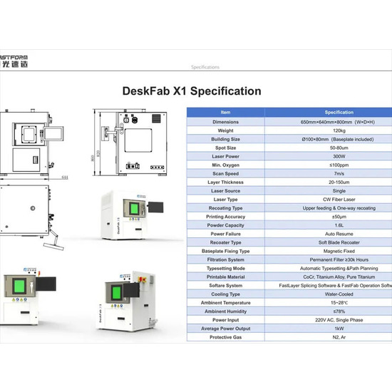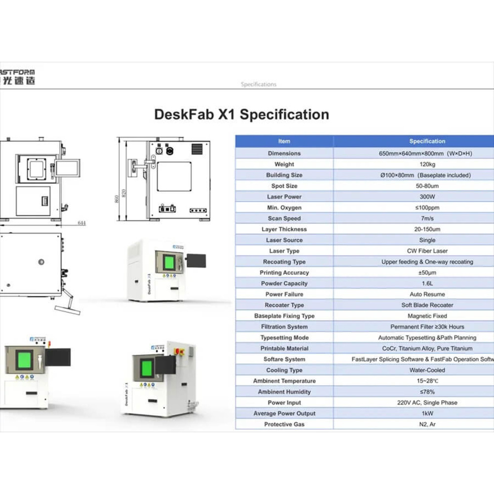 Привнесите промышленную 3D-печать металлом в ваше рабочее пространство с 3D-принтером SLM FastForm DeskFab X1. Как первоклассное настольное SLM-решение «все в одном», он разработан, чтобы предоставить вашей стоматологической лаборатории, мастерской или отделу исследований и разработок непревзойденные возможности. Эта компактная, но мощная машина делает высококачественное изготовление металлических изделий более доступным, экономичным и удобным в использовании, чем когда-либо прежде. Благодаря интеграции всего рабочего процесса — от печати до управления порошком — в единую, интеллектуальную экосистему, DeskFab X1 является идеальным инструментом для производства точных металлических деталей с выдающейся эффективностью.
