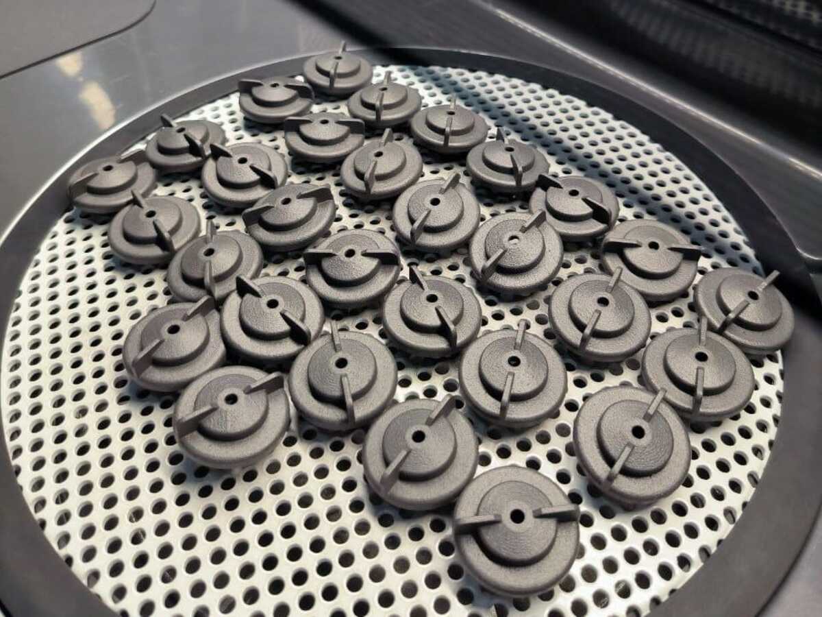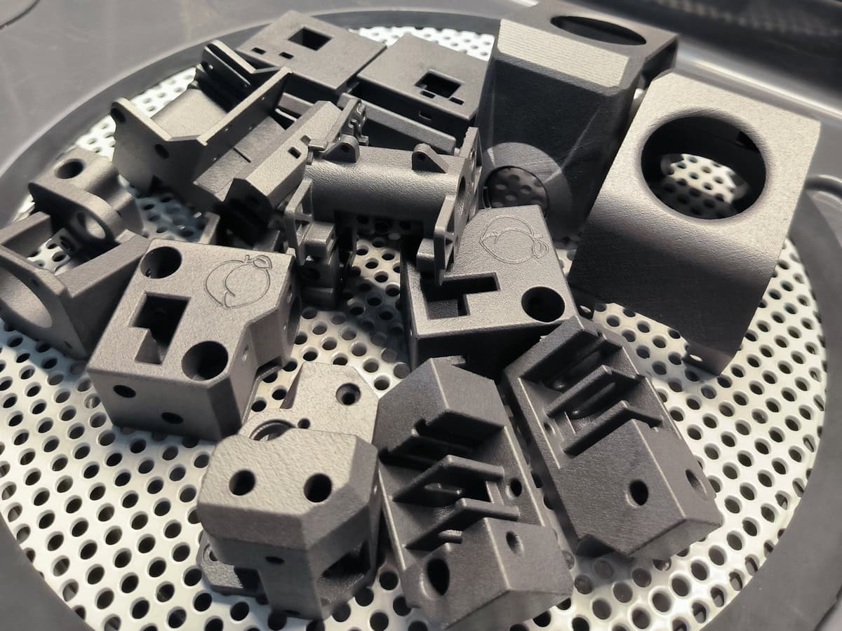 • Высокая скорость печати. Технология SLS позволяет быстро производить большие партии деталей.